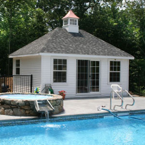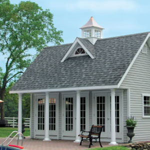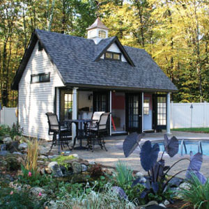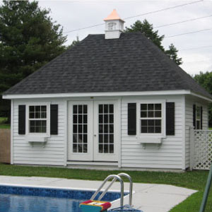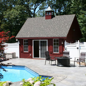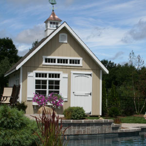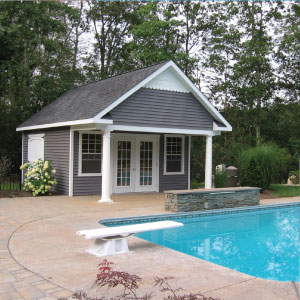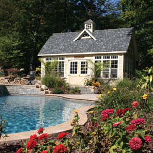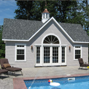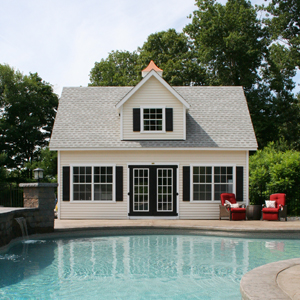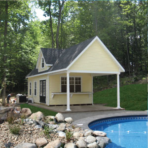Whether you need more storage for outdoor items or want to create the ideal location for entertaining on hot summer days, our Elite pool house offers the perfect setting. Available in three styles – cape, cottage, and villa – this pool shed exudes classic New England charm. Plus, because it’s completely customizable to your preferences, it’s sure to complement your home and its exterior areas. Simply select your favorite color combinations, doors and windows, layout, and more to create a functional, beautiful pool house.